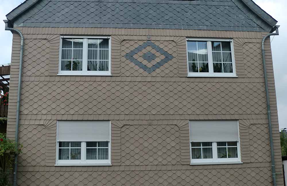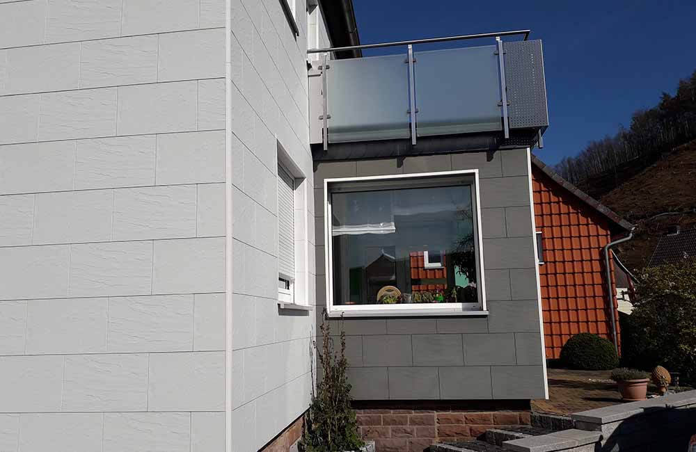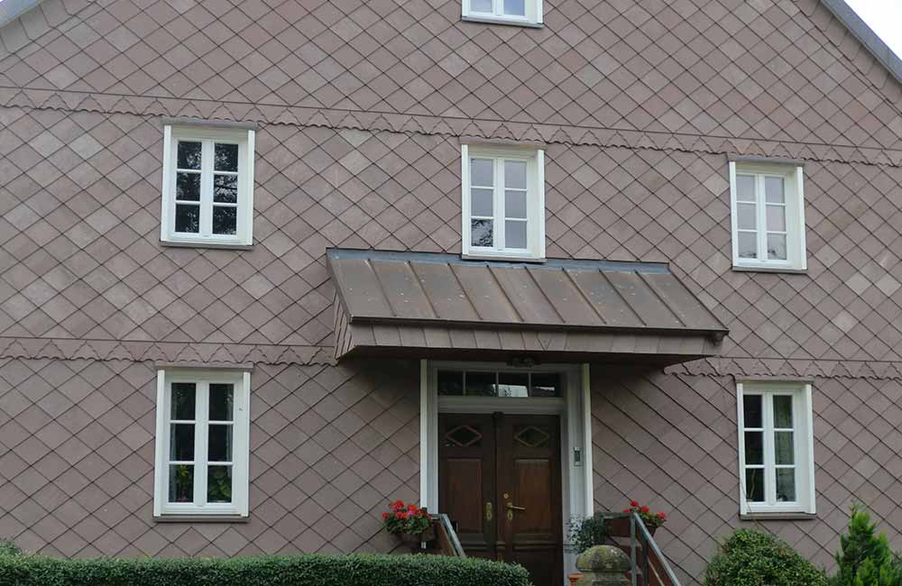• Fassadenbekleidungen aus Naturstein (Schiefer, Sandstein) und Faserzement
