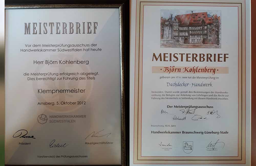2012 - Meisterprüfung im Klempnerhandwerk - Björn Kohlenberg